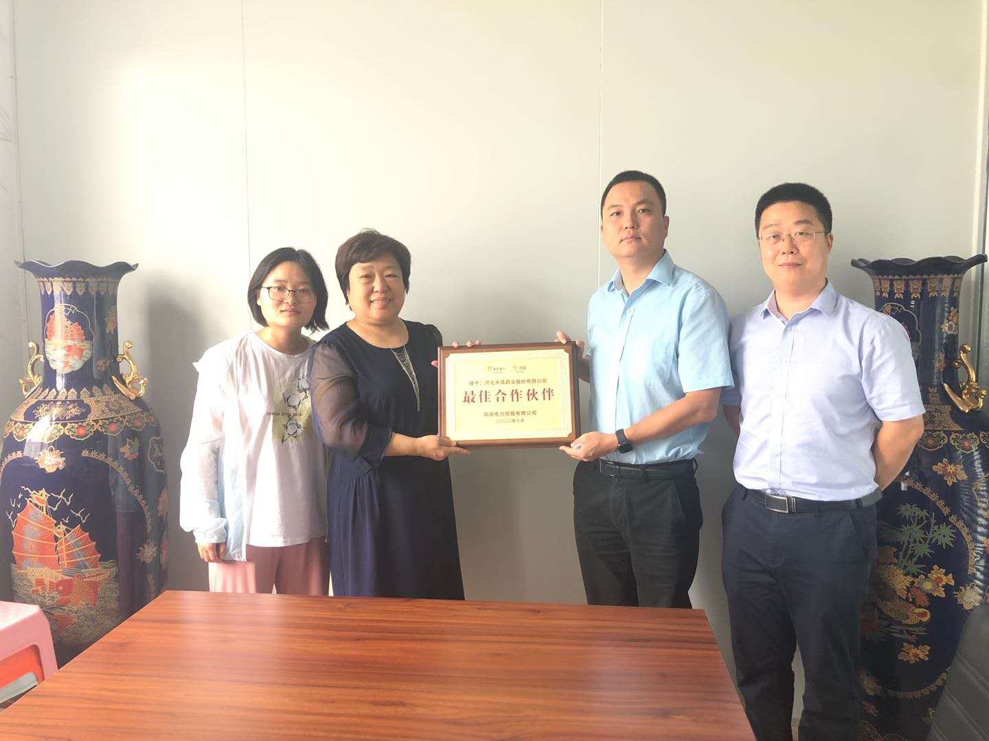 近日,華潤(rùn)電力控股有限公司大客戶總監(jiān)李冰一行為公司送來“最佳合作伙伴”牌匾。公司副總經(jīng)理宮平熱情接待并合影。