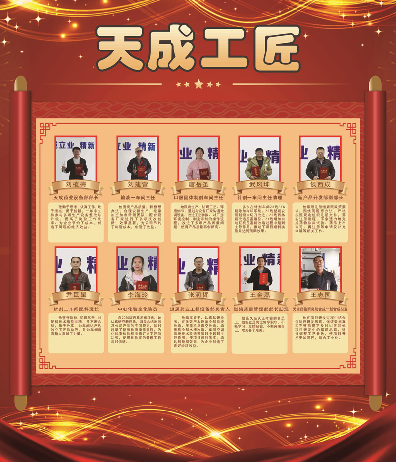唐岳圣:口服固體制劑車間主任,她跟班生產(chǎn)、鉆研工藝、琢磨細(xì)節(jié)、通過與設(shè)備廠家溝通微調(diào)設(shè)備、改進(jìn)工藝參數(shù)、對廠房環(huán)境控制、制定詳細(xì)的操作流程,改進(jìn)了多項產(chǎn)品質(zhì)量問題,使得產(chǎn)品質(zhì)量再創(chuàng)新高。