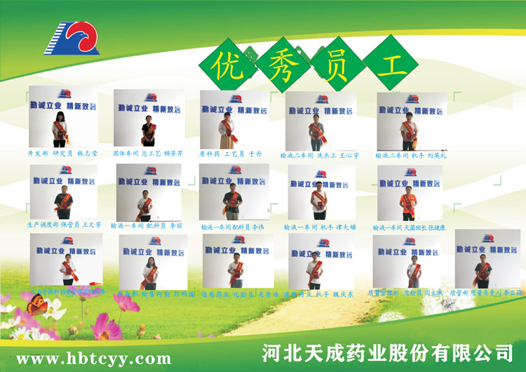 | 8 | 律大蟒 | 輸液一車間 | 制袋灌封 | 他虛心學習,不斷完善自身技能,提高業務能力,很好的完成本職工作。他不忘幫助身邊同事,在崗位上營造了良好的氛圍。 | |