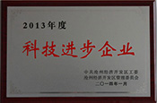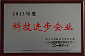 2014年榮獲“2013年度科技進步企業” 榮譽稱號